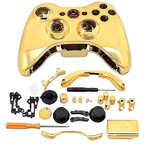 Super Custom Replacement Wireless Game Controller Shell Case Cover Kit for Xbox 360 - Includes Button Set, Torx & Phillips Head Screwdrivers (Gold)