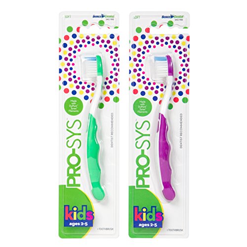 PRO-SYS® Kids Toothbrush (Colorful 2-Pack) - Made with Soft Dupont® bristles (Ages 2-5 for Toddlers and Young Children)