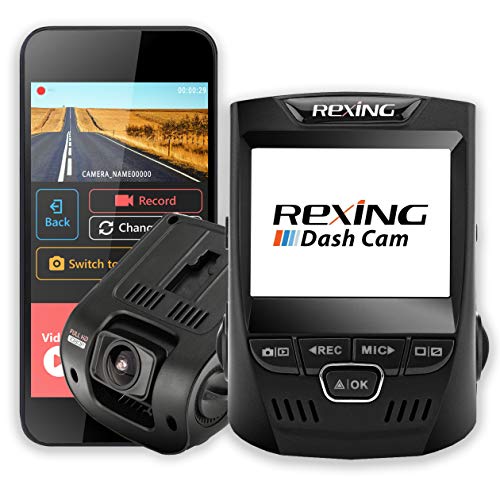 Rexing V1 Wi-Fi Car Dash Cam 2.4" LCD FHD 1080p 170° Wide Angle Dashboard Camera Recorder with G-Sensor, WDR, Loop Recording, Supercapacitor, Mobile App