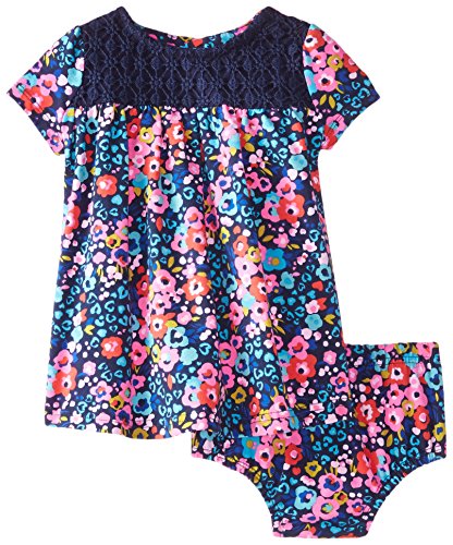 Hartstrings Baby Girls' Floral Print and Crochet Knit Dress and Panty Set, Blue Floral, 24 Months