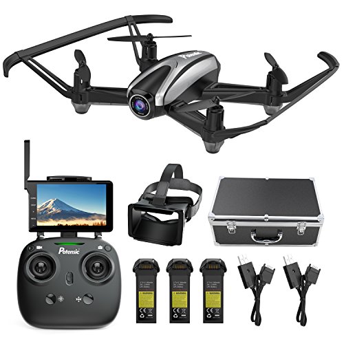 Potensic Drone with Camera, FPV RC Quadcopter 720P HD Live Vide with 5 Inch Screen Monitor, Headless Mode & Altitude Hold Function -VR Goggles Equipped (Azure)