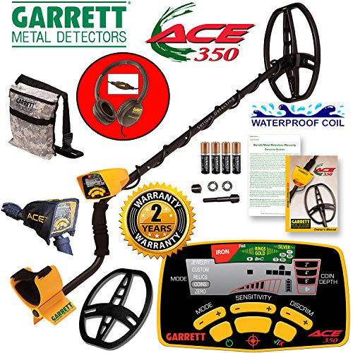 Garrett Ace 350 Metal Detector Discovery Pack with 8.5x11" DD Search Coil, Camo Pouch, Coil Cover, Rain Guard, Headphones