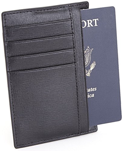 Royce Leather RFID Blocking Slim Travel Passport Wallet in Saffiano Leather, Black