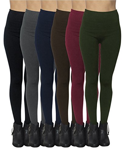 6 Pack Seamless Fleece Lined Leggings for Women - Winter, Workout & Everyday Use - One Size