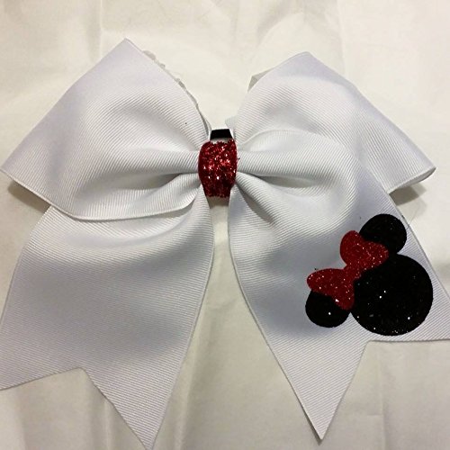 JERSEY BOWS Cheerleading Bow - White Plain Grosgrain Full Cheer Bow with MINNIEWEARING RED Glittered Bow - Big 3 Inch Cheer Bow - Team Orders Available by Request