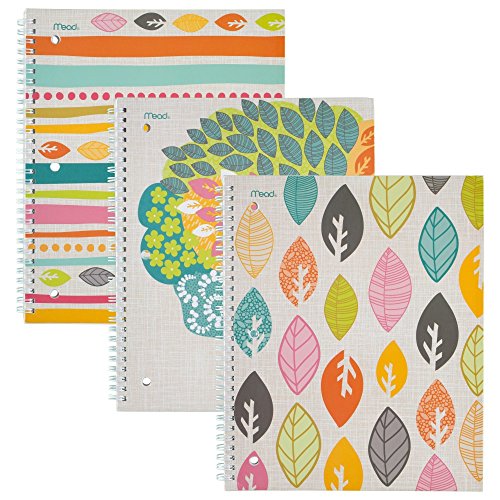 Mead Spiral Notebooks, 1 Subject, College Ruled, Assorted Botanical Boutique Designs, 3 Pack (73097)