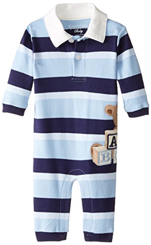 Kitestrings Baby Boys' Newborn Teddy Bear Polo Romper, Blue/Multi Stripe, 3-6 Months