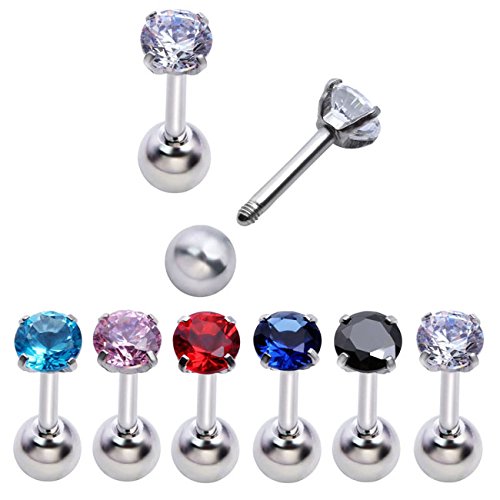 PiercingJ 8-12pcs Unisex Cubic Zirconia Gem Stainlss Steel Barbell Earring/Cartilage Helix Earring/Stud Earring