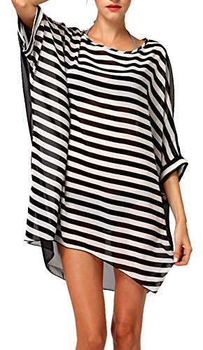 DQdq Sexy Women's Oversized Striped Beach Bikini Swimwear Cover-up