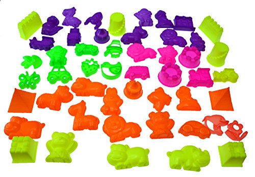 50 Piece Deluxe Sand Molds Set - Safari Animals, Mini Castles and Geometric Shapes (Sand Not Included)
