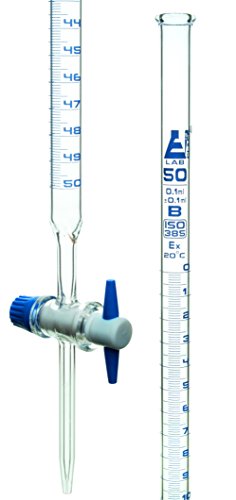 EISCO Borosilicate Glass Burette, with PTFE Stopcock, 50mL Capacity, 0.10mL Graduation Class 'B'