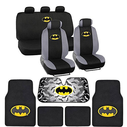 BDK C1304 Batman Seat Cover & Carpet Floor Mats & Sun Shade for Car SUV Van Truck-14 Piece Full Interior Protection Auto Accessory Gift Set