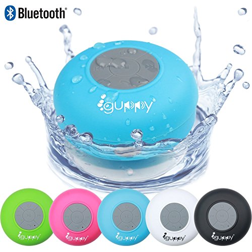 Guppy Water Resistant Bluetooth Shower Speaker - Wireless Portable, Kid-friendly, Built-in Control Buttons, Speakerphone, Powerful Suction Cup, Safety Lanyard - Best for Indoor & Outdoor Use (Blue)