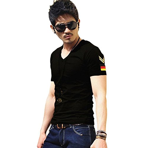 Men Summer Casual Button V Neck Slim Muscle Tops Tee T Shirt