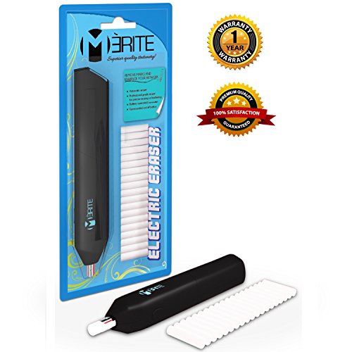Premium Electric Eraser Kit with Eraser Refill Pack by Merite - Battery Operable - Includes 20 Refill Erasers