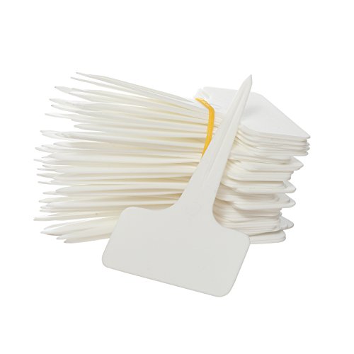 Prudance 50pcs Waterproof T Tag Plant Markers - Premium Nursery Garden Labels - Eco Friendly - White