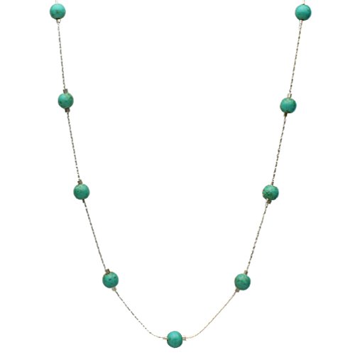 Simulated Turquoise Stone Illusion Station Sterling Silver Chain Necklace