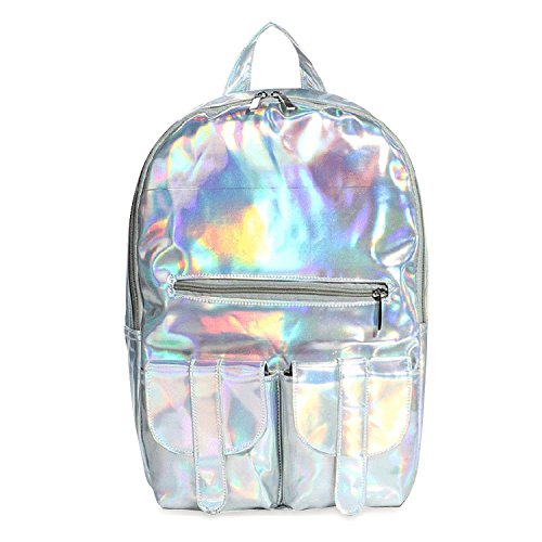 Vere Gloria Girl’s Hologram Daily Backpacks Bags for Picnic Laptop School Travel Hiking (Silver)