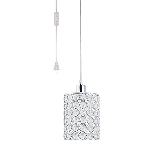 Globe Electric 65142 Angelica 1-Light Cylindrical Plug-in Pendant, Polished Chrome Finish, Caged Crystal Shade, Clear 15ft Cord, in-Line On/Off Rocker Switch