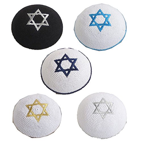 5 PCS Set Kippah Lot SkullCap Magen David Star Yamaka Yarmulke Kippa Judaica Jewish