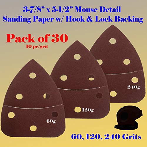 30 Assorted Mouse Detail Sander Sandpaper Sanding Paper Hook & Loop Assorted 60 120 240 Grits 5.5