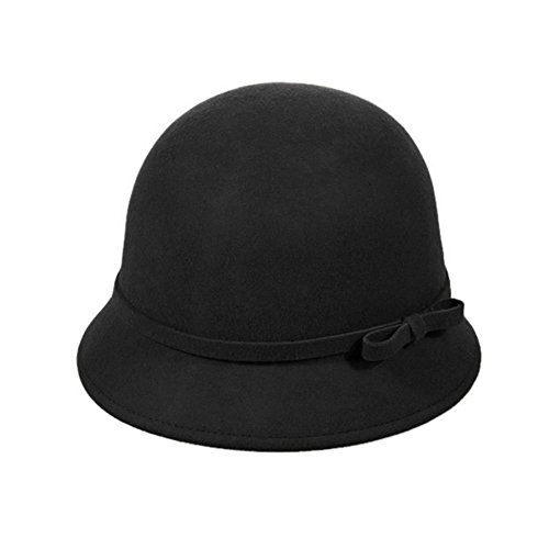 VBIGER Fashion New Women Vintage Polyester Round Fedora Cloche Cap Polyester Felt Bowler Hat (Black)