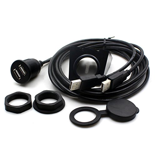 USB Flush Mount Cable - Rerii 1 Meter 3ft Dual USB Extension Flush, Dash, Panel Mount Cable, for Car, Boat, Motorcycle and More