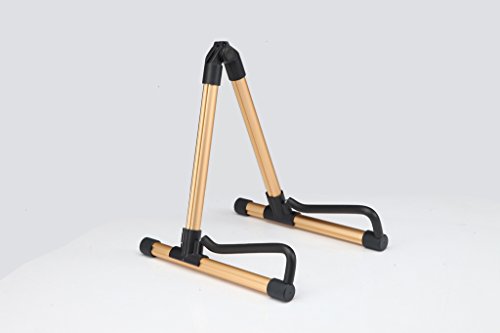 Rocsai A-frame Universal Folding Guitar Stand for Acoustic electric classical Guitar Bass Violin Ukulele Banjo - Folding, Portable and Lightweight, Single Stand (Gold)