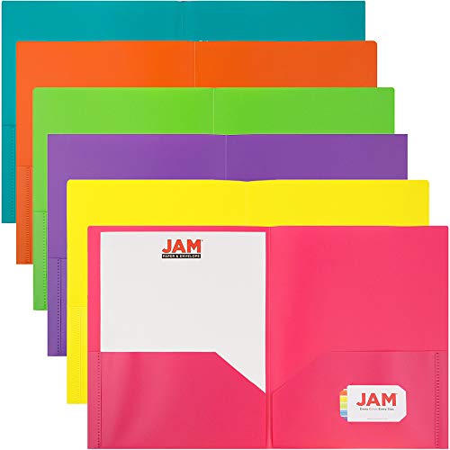 JAM PAPER Plastic 2 Pocket School POP Folders - Assorted Fashion Colors - 6/pack