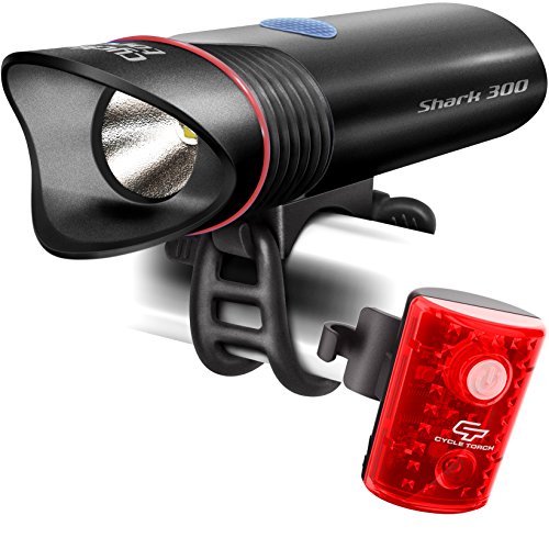 Cycle Torch Shark 300 USB Rechargeable Bike Light Set- Bicycle Headlight- Free LED USB Tail Light, Fits All Bikes