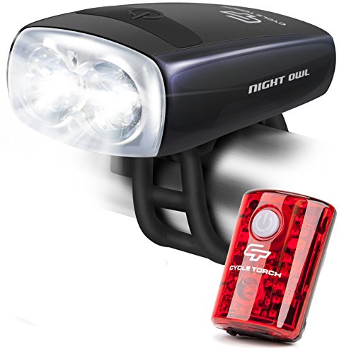 Cycle Torch Night Owl USB Rechargeable Bike Light Set, Perfect Commuter Safety Front and Back Bicycle Light LED Combo - Free Bright Tail Light - Compatible with Mountain, Road, Kids & City Bicycles