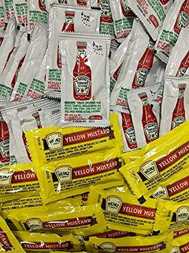 Heinz Condiment Packets Ketchup and Mustard (100 Total; 50 Each Flavor)