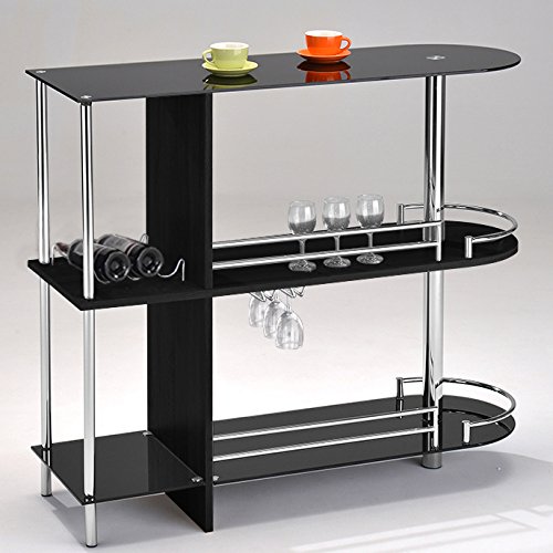 Kings Brand Furniture Bar Table with Two Tempered Glass Shelves, Black