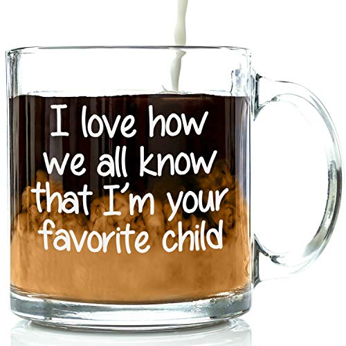 Got Me Tipsy FAS-037 1 PCS I'm Your Favorite Child Funny Glass Coffee Mug-Father's Day Gifts For Dad From Kids, Son or Daughter-Novelty Birthday Present Idea For Parents, One Size, O-Clear