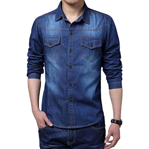 Eshion Men Cool Casual Long Sleeve Turn-down Collar Jean Shirt Thin Coat