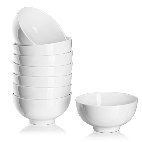 DOWAN 8 Packs 10 Ounces Porcelain Small Bowl Set for Ice Cream, Dessert, Small Side Dishes, Salad, Fruit, Dip, White