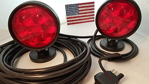 ANC LIGHTHOUSE LED Magnetic Tow Lights, S.T.T., 4 Way Flat LED Plug + Spare Vehicle Side LED Plug, 37 Feet Total Length 16/4 Cable, Blk RBR Coated 3" Round Ceramic Magnets, 60 LB Pull Strength