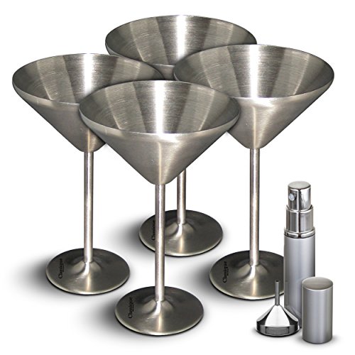 Classique Martini Glasses with Freezer Gel Insulation Sets Of 2 Or 4 with Martini Recipe Ebook, Atomizer and Funnel