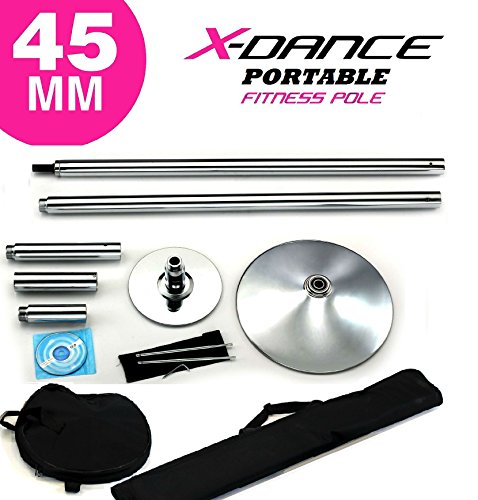 X-Dance (TM) 45 mm Professional Exotic Fitness Removable Pole Dance Stripper with 2 Black Portable Carry Bags Chrome Dancing Spinning Pole