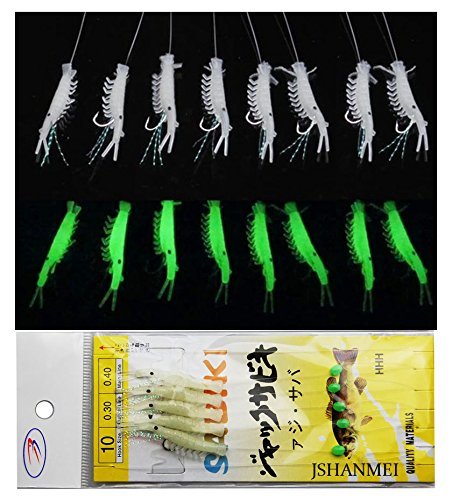 JSHANMEI 10 Packs Luminous Shrimp Sabiki Bait Rigs Glitter Glow in The Dark Fish Saltwater Bait Lure Catching Hook Tackle Fishing Rigs