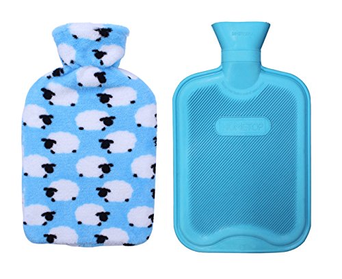 HomeTop Premium Classic Rubber Hot or Cold Water Bottle with Soft Fleece Cover (2 Liters, Blue/Blue Sheep)