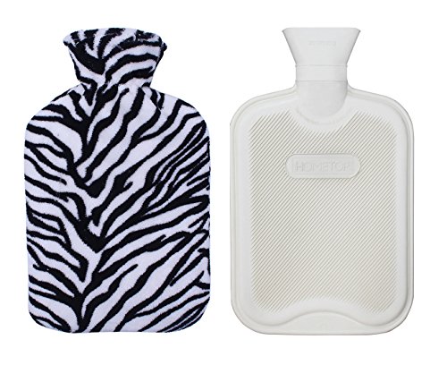 HomeTop Premium Classic Rubber Hot or Cold Water Bottle with Soft Fleece Cover (2 Liters, White/Zebra Print)