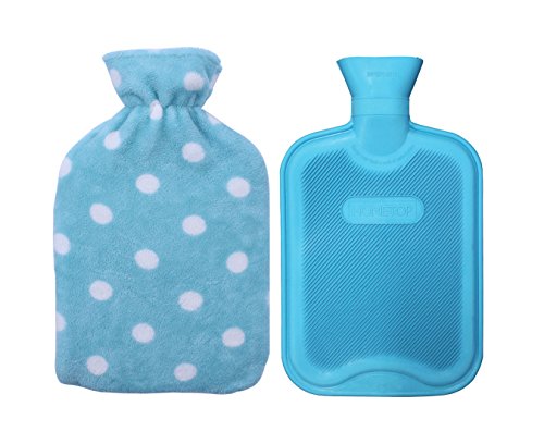 HomeTop Premium Classic Rubber Hot or Cold Water Bottle with Soft Fleece Cover (2 Liters, Blue/Blue Polka Dot)