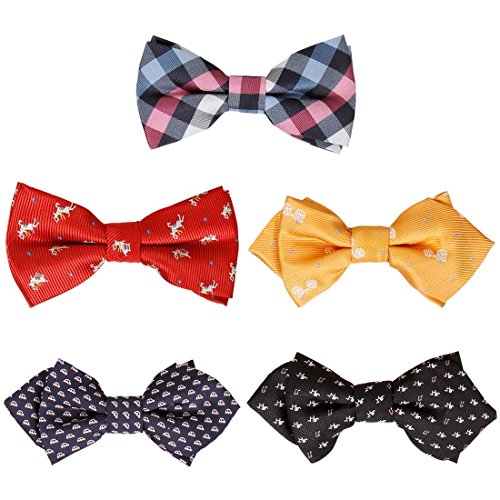 Bundle Monster 5 pc Boys Mixed Pattern Adjustable Elastic Pre-Tied Bow Tie Fashion Accessories - Set 7