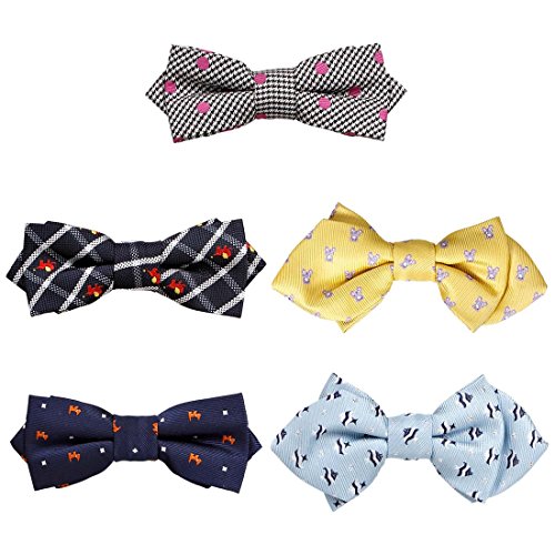 Bundle Monster 5 pc Boys Mixed Pattern Adjustable Elastic Pre-Tied Bow Tie Fashion Accessories - Set 1