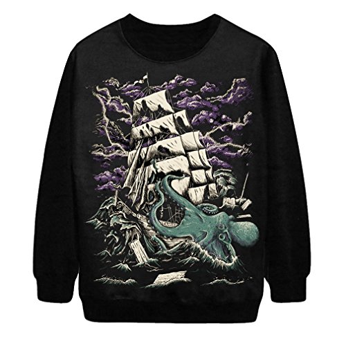 Women's Spring Crewneck Pullover Long Sleeve Printed Corsair Hoodies One Size Black
