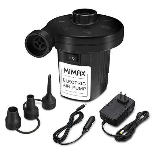 MIMAX Electric Air Pump Portable Air Mattress Pump Quick-Fill 110V AC/12V DC Inflator Deflator with 3 Nozzles for Inflatables Air Bed Boat Raft Mattress Outdoor, Car Use, Indoor, Black