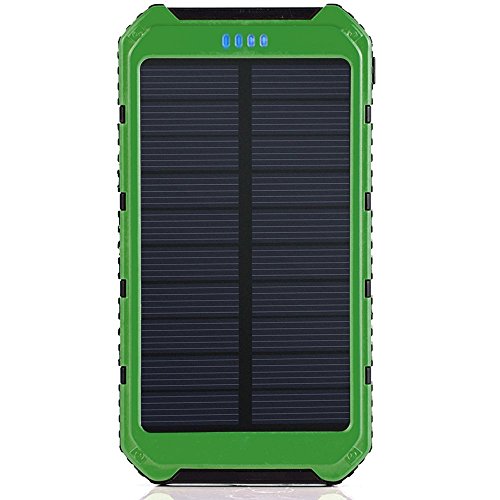 Solar Charger, Portable Power Bank 10000mAh Dual USB Battery Charger External Backup Power Pack for Cellphone Camera GPS Tablets and Other 5V USB Devices-Green