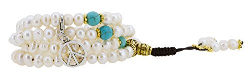 Freshwater Cultured Pearls Yoga Meditation 108 Prayer Beads Mala Wrap Bracelet or Necklace with Brass Guru Bead