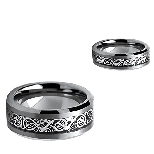 His & Her's 8MM/6MM Tungsten Carbide Celtic Knot Dragon Design Carbon Fiber Inlay Wedding Band Ring Set